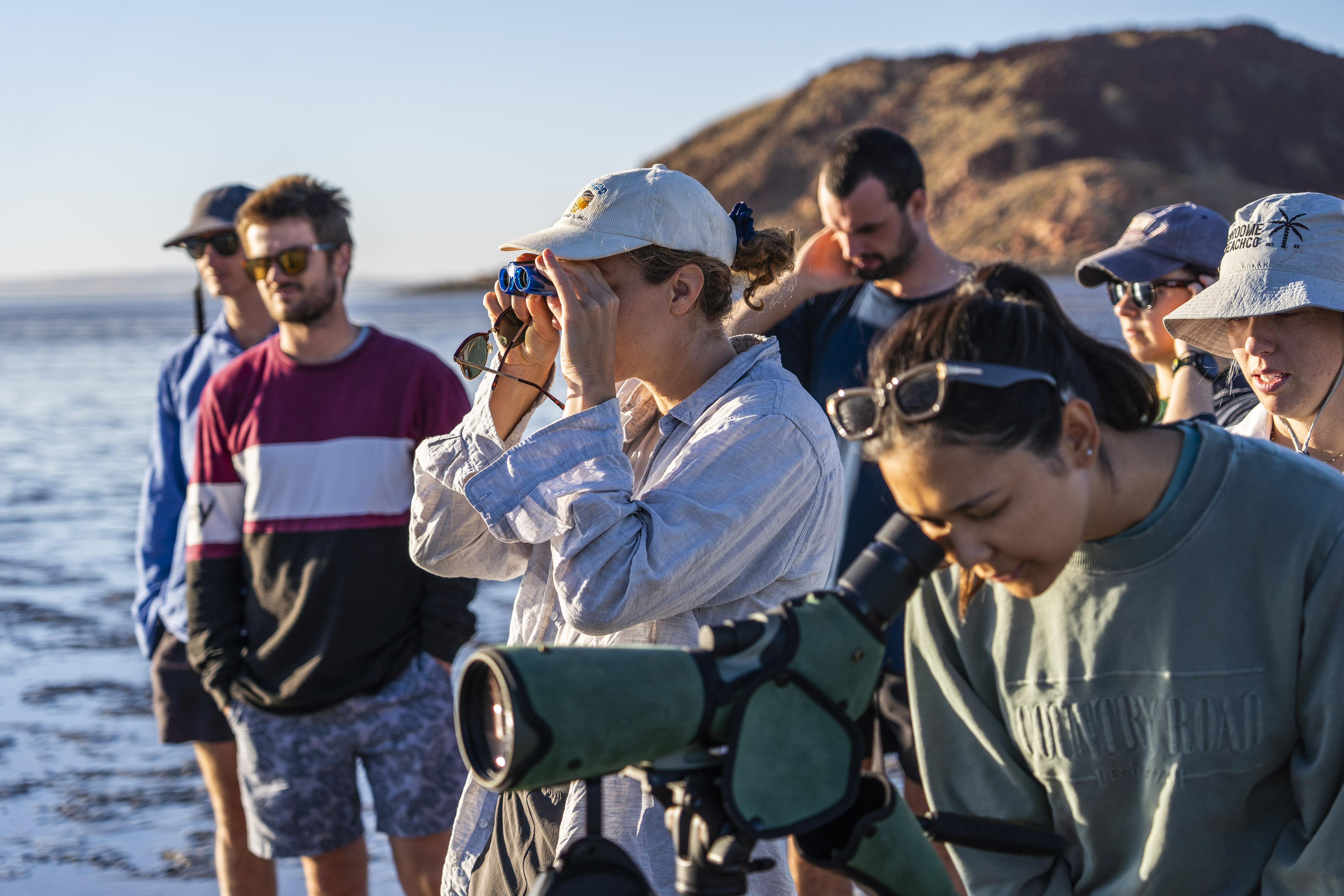 Keen bird watchers soak in the information from a bird-watching event in Karratha. (ABC Pilbara: Kelsey Reid)
