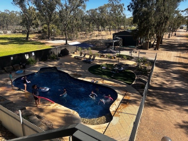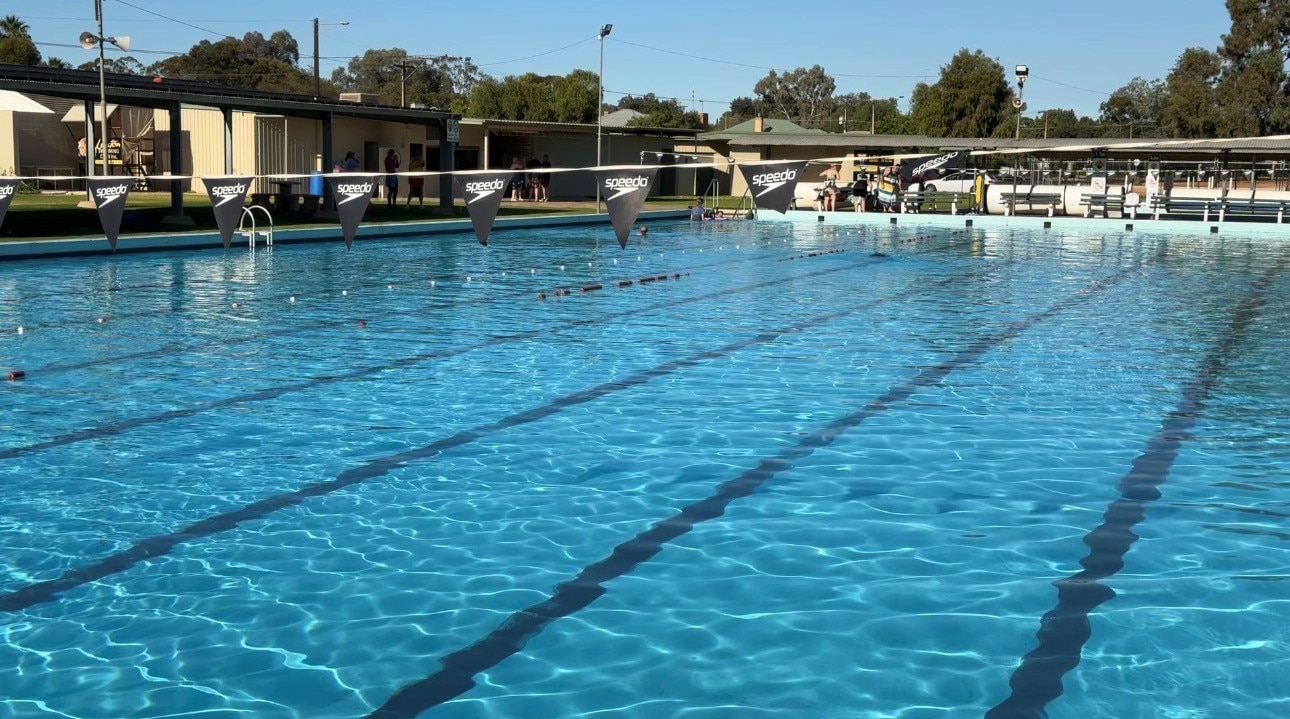 The Kingston on Murray Caravan Park pool was part of the trail of destruction left by the 2022 floods in South Australia's Riverland. / It's now back in action and as popular as ever with campers.