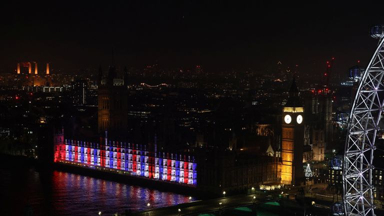 Image: Houses of Parliament in London illuminated. Pic: Reuters