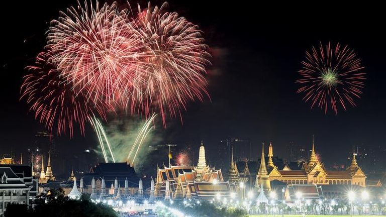 Image: Fireworks explode during celebrations in Bangkok, Thailand. Pic: Reuters