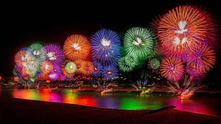 Image: Fireworks light up the sky during New Year celebrations in Ras Al Khaimah, UAE. Pic: Ras Al Khaimah Tourism Authority/Reuters