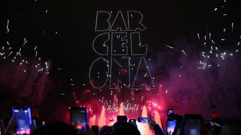 Image: Drones form the word "Barcelona" in the night sky. Pic: Reuters