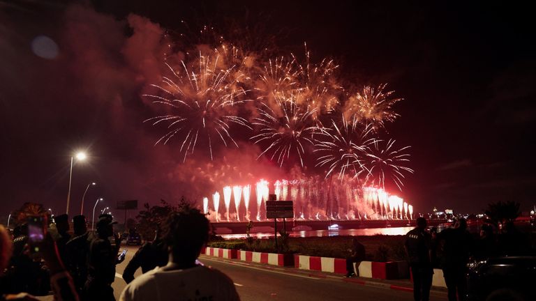 Image: People watch fireworks in Abidjan, Ivory Coast. Pic: Reuters
