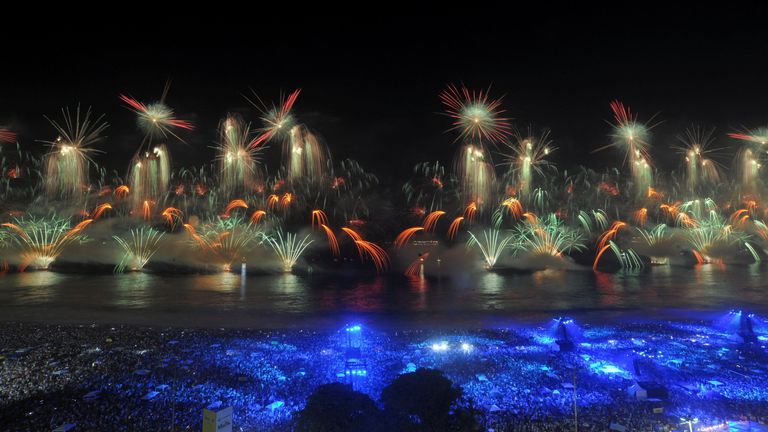 Image: Fireworks explode over the Copacabana beach in Rio de Janeiro, Brazil. Pic: Reuters