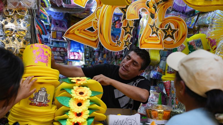 Image: A vendor sells New Year's Eve party goods at a market in downtown Lima, Peru, Tuesday, Dec. 30, 2025. (AP Photo/Guadalupe Pardo)