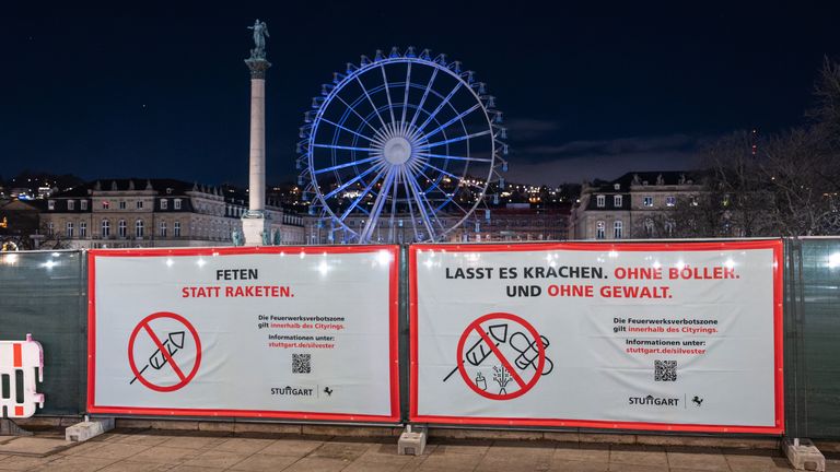 Image: Cordoned-off Schlossplatz, where there was no New Year's Eve party or fireworks. Pic: AP