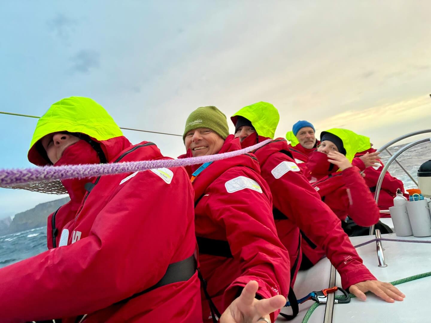It's all smiles for the crew on MWF Kayle as they near the finish line. (Supplied: Making Waves Foundation)