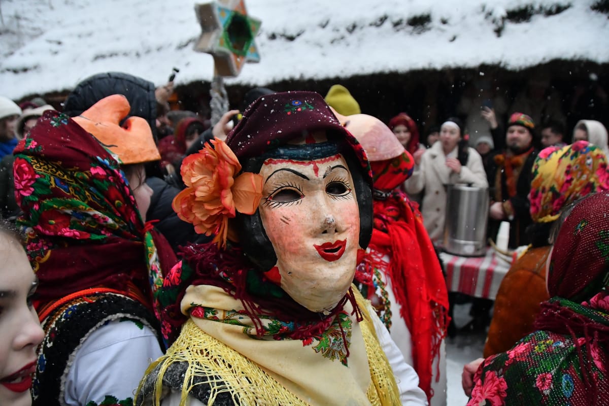 This year, I'm thinking about cultural preservation despite the ravages of the world. Photos from Lviv, Ukraine, show people celebrating Malanka Pereberia — a folk holiday that includes house visits, songs, costumes, and mask-making. (photo by Mykola Tys/Global Images Ukraine via Getty Images)