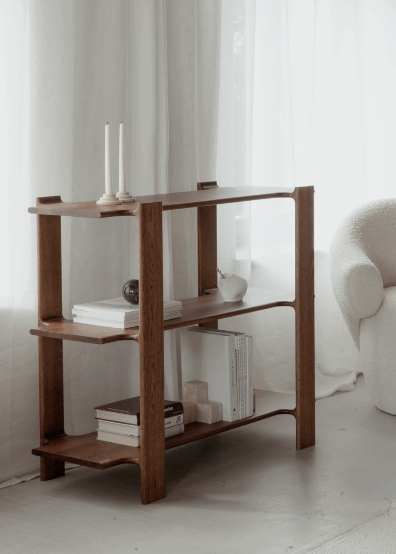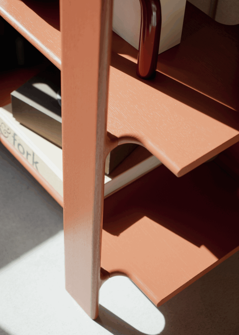LIGO offers a similarly refined approach as a standing bookcase, defined by a unique construction detail. Its solid oak frame is crafted so the vertical legs flow seamlessly into the horizontal shelves, creating soft transitions where you’d normally expect hard edges. Its name, derived from the Latin “I connect,” nods to these elegant junctions. Available in multiple sizes and finishes, LIGO is another way TAMO offers storage that feels thoughtfully elevated.