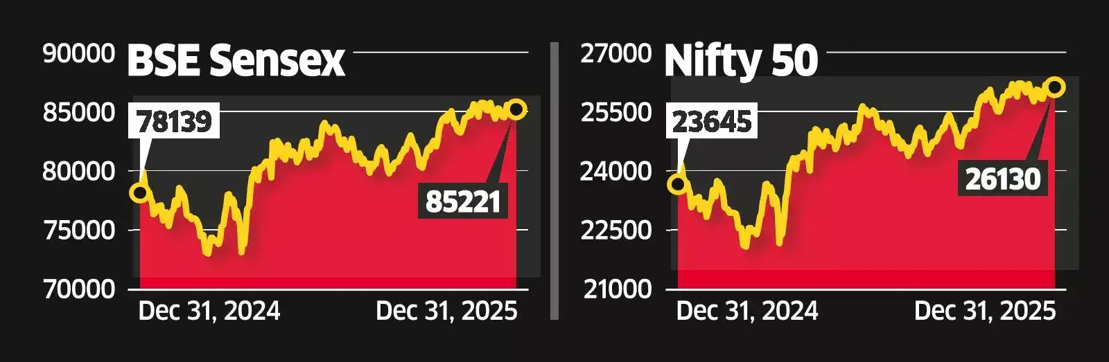 The stock market ended 2025 on a buoyant note on Wednesday - the last day of the year's trading, with both indices gaining up to 0.7%.