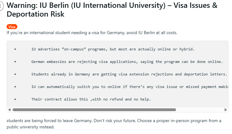 In early 2025, Berlin’s immigration authority, the Landesamt für Einwanderung (LEA), began reassessing hybrid study programmes and how they fit within Germany’s student residence framework.According to Euronews, this reassessment led Berlin authorities to conclude that several of IU’s programmes did not meet the legal threshold of “in-person study” required for a student residence permit. Students who had already arrived in Germany, paid tuition and started classes were informed that their permits would not be renewed.Some were given a few weeks to leave the country. Others were told they could continue their degrees only if they did so from outside Germany.