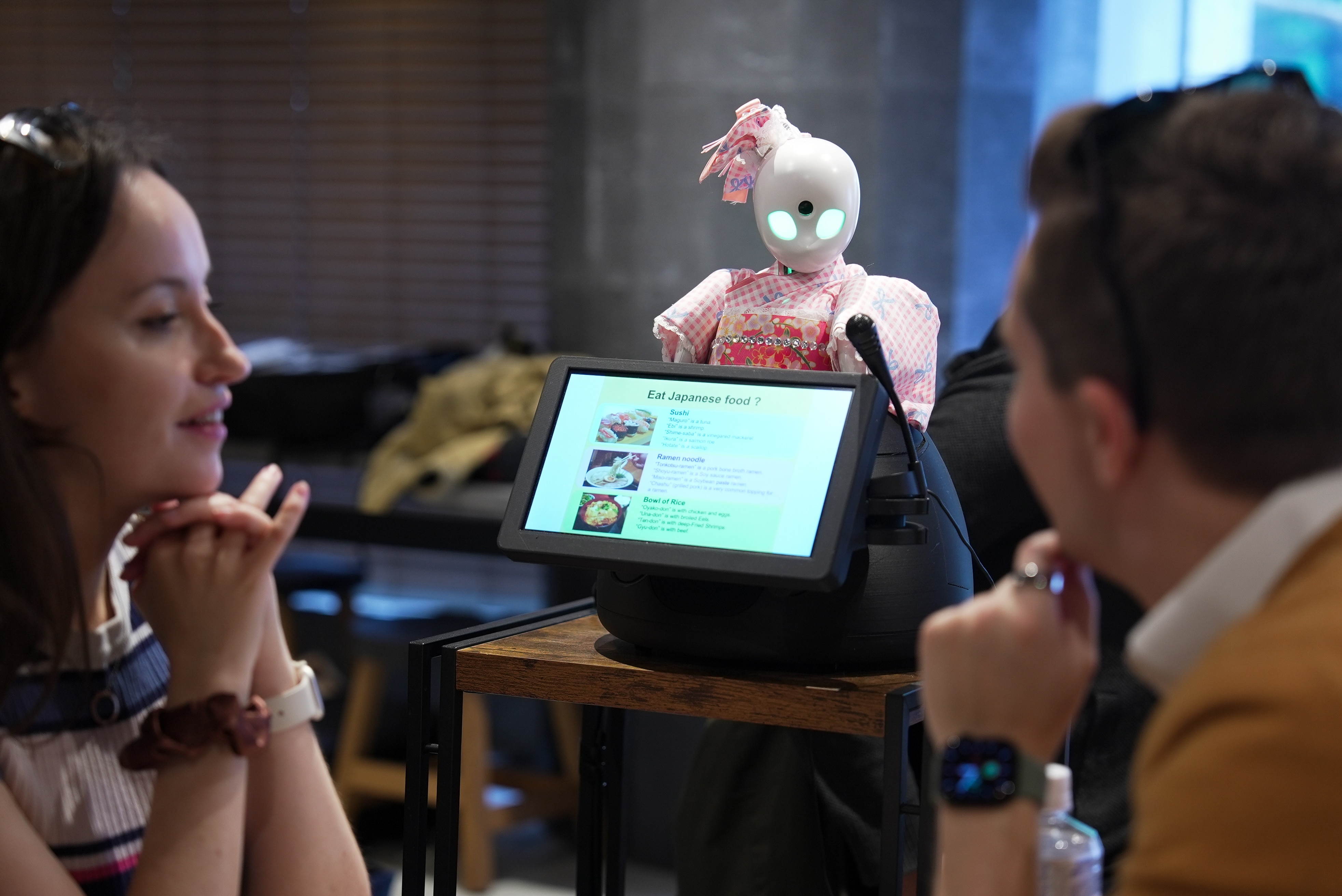 Instead of just serving guests at the cafe, customers can also carry a robot on their back for a personalised tour of the local area.