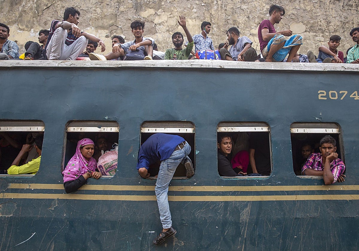 El viaje en ferrocarril más apasionante de toda mi vida y del que guardo un imborrable recuerdo es el trayecto de 330 kilómetros entre Daca, la capital de Bangladesh, y Chittagong, ciudad portuaria en el Golfo de Bengala . Formaba parte de un reducido grupo de periodistas a los que había invitado el Banco Mundial para dar a conocer sus actividades en los países menos desarrollados de Asia. Bangladesh era el país más pobre del continente en octubre de 1986, la fecha del viaje, cuando todavía eran visibles las consecuencias de la guerra de independencia de los años 70 con la implicación de Pakistán y la India.Llegamos a la estación de Kamalapur al atardecer. Era un vasto y feo edificio de cemento con un gran vestíbulo que conducía a las vías. Una multitud pululaba por los alrededores y su interior. Al llegar al andén, un mozo con un látigo de caña iba despejando el camino a nuestra comitiva, golpeando sin contemplaciones a los indigentes adormecidos en el suelo. Delante de nosotros, abría camino el ministro de Transportes y su séquito, nuestros acompañantes en el trayecto.Decenas de vendedores ambulantes anunciaban su mercancía: té, refrescos y frutos secos. Había viajeros en los techos de los vagones y agarrados a los estribos. La Policía les desalojaba a gritos, pero volvían a trepar sin inmutarse.Subimos al tren con una locomotora eléctrica. A cada uno se nos adjudicó un compartimento con una cama y un lavabo. El trayecto discurría por charcas y cañaverales, puentes y pequeños viaductos que salvaban la accidentada topografía. Una campanilla nos llamó a la cena en el coche restaurante. Había manteles blancos y velas en las mesas que no disipaban el aspecto vetusto de los vagones. Nos sirvieron cuatro o cinco platos unos camareros con chaquetillas blancas y el escudo de los Ferrocarriles de Bangladesh .Después de la cena, recorrí el tren. Había vagones de segunda con compartimentos para ocho personas. Algunos pasajeros comían samosas y pasteles de patata. Otros yacían recostados sobre los asientos. Los vagones de tercera eran bancos de madera corridos en los laterales. Estaban abarrotados con gentes durmiendo en el suelo . Un olor a especias y humanidad impregnaba el aire, movido por ventiladores. En las paradas, subían vendedores ambulantes con todo tipo de baratijas.En el desayuno, el ministro nos explicó que el tendido ferroviario había sido construido por los ingleses a finales del siglo XIX. Probablemente los vagones eran los mismos que en la época de la Reina Victoria . Muchos años después, en 2019, leí que 16 personas habían muerto en un accidente mientras viajaban de Daca a Chittagong, cuyo río desembocaba al mar en un enorme estuario.Dormimos en el único hotel de la ciudad y, al día siguiente, nos llevaron a recorrer en barca el río Karnaphuli , en cuyas orillas se bañaban mujeres, vestidas con sari, y niños desnudos. Poco tiempo después, me enteré de que una riada había devastado la zona, provocando centenares de muertos.Volvimos a Daca por una estrecha y penosa carretera de tierra, cruzando ríos y aldeas. En uno de ellos, una gran aglomeración escuchaba un sermón. Daca era ya una ciudad con más de 15 millones de habitantes con una extensión sin límites y una miseria lacerante.En la última noche, seguí a una multitud que entraba en un anfiteatro de aspecto romano. Pronto me di cuenta de que el espectáculo era la ejecución de un desgraciado al que iban a ahorcar. Salí corriendo de las gradas para fumar un cigarro en la oscuridad. Un niño se me acercó: «One rupee, please, Sir» . Una rupia. Le di un billete. Mis zapatos estaban manchados de barro.