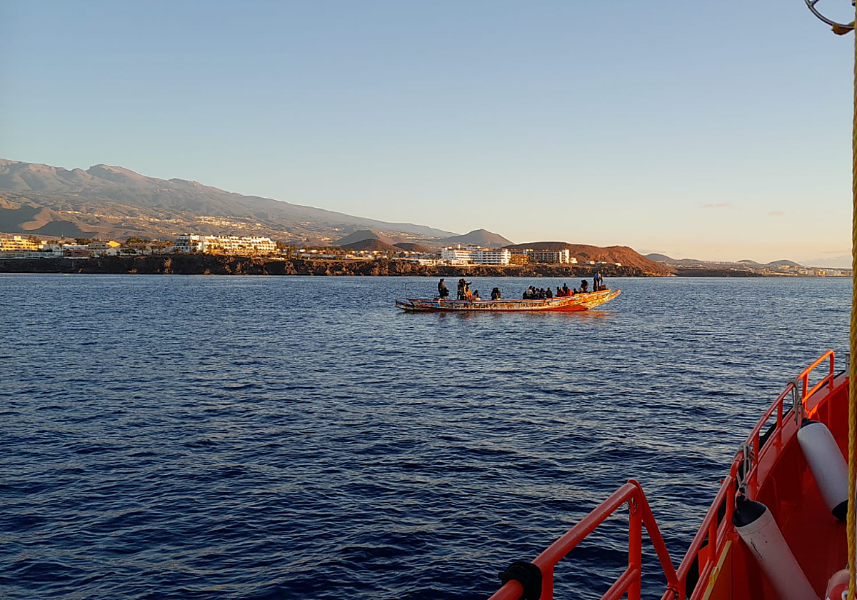 Salvamento Marítimo ha escoltado a un cayuco con unas 40 personas a bordo localizado a unos 400 metros de Costa del Silencio, en el sur de Tenerife.