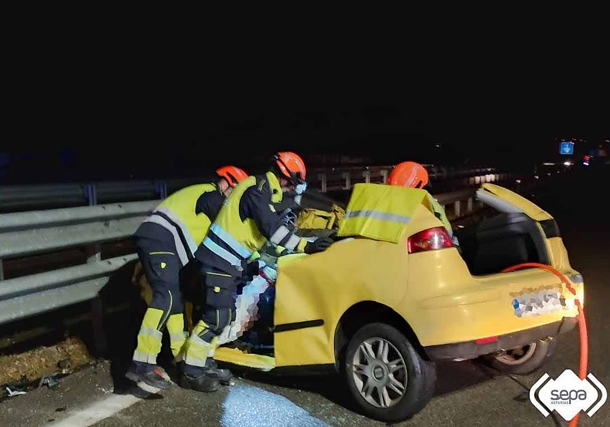 Bomberos de Llanes trabajan para excarcelar a la conductora 112