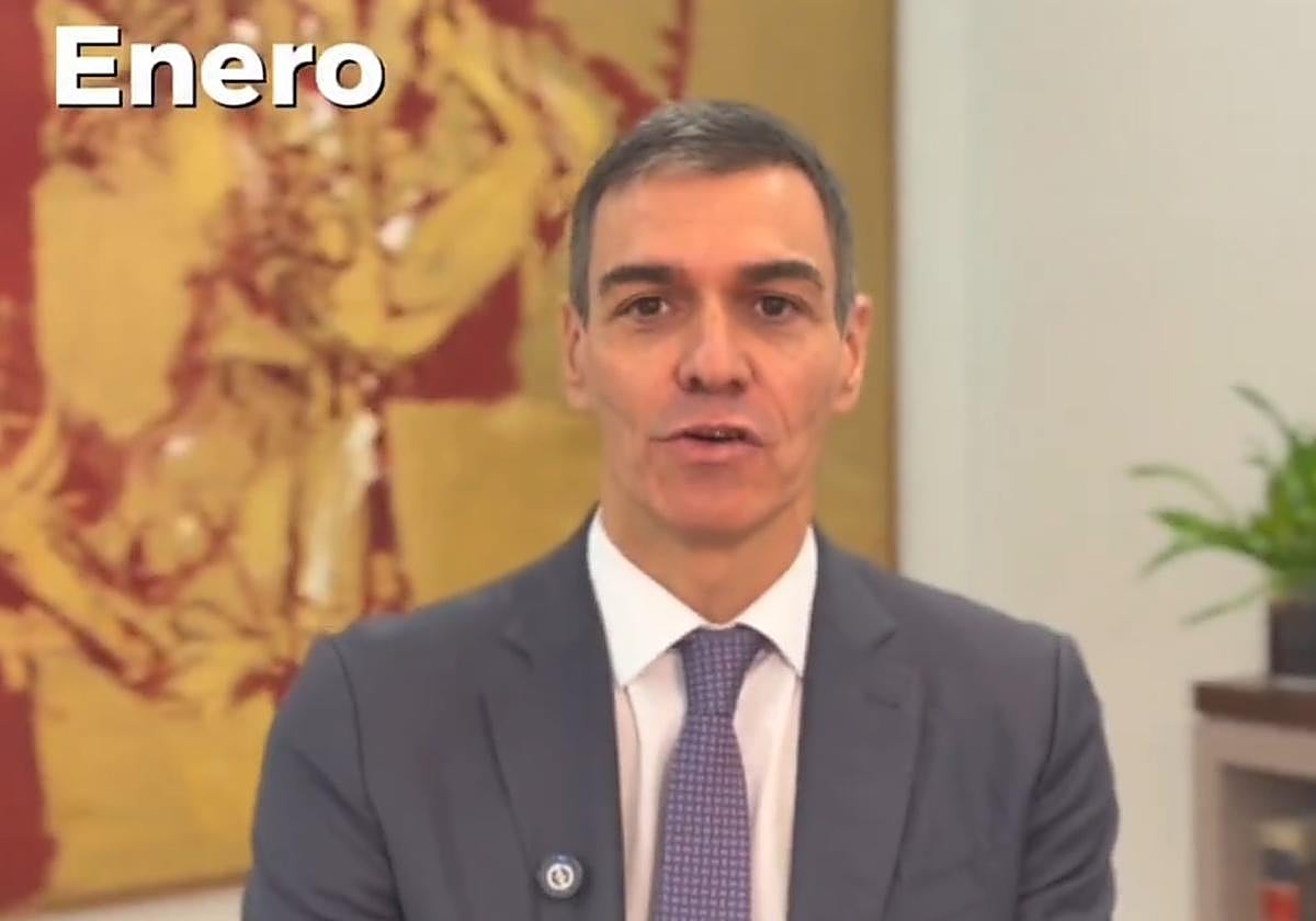 El presidente del Gobierno termina el año volcado en sus redes socailes a las que tanto gusto ha cogido como canal de comunicación en los últimos meses. En su vídeo de Nochevieja, Pedro Sánchez hace un balance, mes a mes, de los logros de su Ejecutivo en el que no se percibe ni un ápice de autocrítica .Porque entre esos logros con los que, según el presidente, «este Gobierno ha mejorado tu vida mes a mes» el presidente se centra en datos económicos y sociales, y también internacionales como su oposición a incrementar el gasto en defensa al 5%, como se exigió en la OTAN. «Nos plantamos ante la exigencia de la OTAN . España no recortará en sanidad o en Acción climática, los servicios públicos son los primeros», aseguraba reforzándo el mensaje apretando el puño.También saca pecho de las medidas para detener el «genocidio» en Gaza, que, según él, capturan el sentir mayoritario de la sociedad español. Eso sí, obvia el engañoso embargo de compra de armamento a Israel, que la semana pasada, tres meses después de su anuncio, ya se ha saltado y que ha vuelto a tensionar a la coalición de Gobierno .Sánchez glosa entre sus doce puntos, más allá de los mencionados más arriba, asuntos como las subidas de las pensiones mínimas, sus medidas para la vivienda, el aumento del Salario Mínimo, los 2.500 millones invertidos en becas, la garantía de cinco comidas saludables en los comedores escolares, la exigencia a subimos las pensiones minimas, medidas para vivienda, salario mínimo, 2.500 millones en becas, 5 comidas saludables en los comedores escolares, exigimos a Airbnb de retirar 65.000 anuncios ilegales de su plataforma, la ampliación de los permisos por nacimiento y para cuidado de hijos, las medidas para ayudar a los «que perdieron todo» en los incendios forestales de agosto, la Ley ELA, la ley de Movilidad Sostenible y el aumento del salario de los empleados públicos. En su selección, no hay hueco para temas candentes del año que finaliza como la ausencia nuevamente de Presupuestos Generales del Estado, la debilidad parlamentaria de su Gobierno, los fallos de las pulseras anti maltrato, los casos de corrupción o los de acoso laboral y sexual que acosan a su partido.« España crece como nunca , pero aún quedan muchas cosas por hacer. En 2025, este Gobierno se seguirá dejando la piel para mejorar la vida de la gente de a pie», concluía su alocución el presidente.