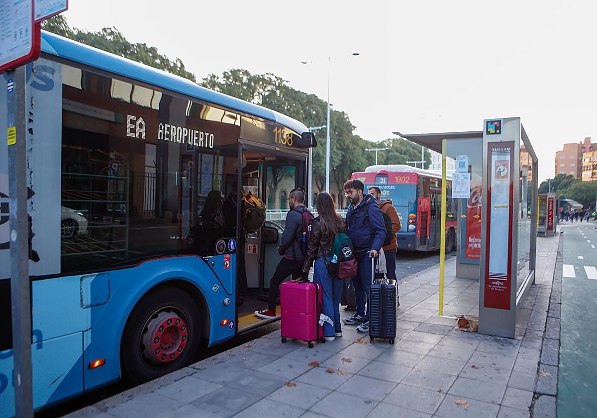 Sevilla lleva años pidiendo la conexión ferroviaria entre Santa Justa y el aeropuerto. Una demanda que reclaman tanto vecinos, turistas y profesionales. Es más, empresarios del sector de la construcción se ofrecieron a financiar parte de la infraestructura ante la pasividad del ministerio de Transportes. El propio alcalde ha recriminado en más de una ocasión al Gobierno de Sánchez que se «castigue» a la ciudad en esta materia, siendo prácticamente la única ciudad de Europa con este tamaño y volumen de pasajeros (se espera cerrar en los diez millones este 2025) sin tren al aeropuerto. Mientras la capital hispalense espera todavía más, las únicas opciones de transporte público son el autobús y el taxi. ABC viaja a Sevilla-San Pablo a bordo de la línea EA de Tussam. El recorrido cuenta con once paradas : Plaza de Armas, Torre del Oro, Prado de San Sebastián, San Bernardo, Luis de Morales, hotel Only You (Kansas City), Santa Justa, Pabellón San Pablo (Kansas City), hotel Ibis (Kansas City) y doble parada en el aeropuerto, tanto en Salidas como en Llegadas. El viaje cuesta seis euros por persona. El precio se ha incrementado en dos euros en los últimos dos años: en 2024 pasó de los cuatro a los cinco euros y en 2025 hasta la tarifa actual. El autobús en el que nos montamos sale de la parada junto a la estación de Plaza de Armas poco después de las 9.15 horas. Su frecuencia es de entre 15 y 20 minutos durante la mayor parte del día; de 8.00 a 20.30 horas. Antes de eso, puede llegar a ser de 25 a 30 minutos entre las 4,30 y las 8,30 horas. También existe un horario nocturno de 20,30 a 1,00 en el que los autobuses pasan en un intervalo de 20 a 30 minutos.Dos turistas argentinas que residen en Ibiza se suben en la primera parada del trayecto ya que durante su estancia en Sevilla se han hospedado en la zona centro. Han elegido esta opción para ir al aeropuerto «por su conectividad» y porque «llega en media hora». Es de hecho, el único transporte que han utilizado en su tiempo en la ciudad, ya que «se puede ir a todos lados andando» . «Me sorprendió que no llegara el tren hasta el aeropuerto», declara a este periódico una de ellas. Las paradas se anuncian en español y en inglés, como sucede en el Metrocentro, algo que cobra sentido al observar que prácticamente todos los viajeros son extranjeros. Un público mayoritariamente extranjeroEl autobús sale de su primera parada con pocos pasajeros, ni siquiera superan la decena. A medida que va avanzando en su trayecto se montan más, pero no llega a llenarse. La media hora se cumple, muy a pesar de lo que esperaban nuestras compañeras de viaje argentinas, en la parada del hotel Only You. Acaban siendo 50 minutos hasta llegar a la terminal de Salidas , aunque la última es en Llegadas, donde se compra el boleto. A diferencia del servicio de autobús en otros aeropuertos del mundo, ubicar el lugar donde se compran no tiene pérdida. La tarifa por persona del viaje en autobús al aeropuerto es de 6 euros y la del taxi, 25 Además de tres máquinas donde hacerse con el ticket, también hay una casetilla con un empleado de Tussam que orienta y vende billetes a los viajeros, que de igual forma pueden comprarlos en el propio autobús. Éste confirma lo que ya se hace evidente al montarse en el vehículo, casi el 90% de los usuarios son de fuera . «Ahora con las navidades puede que haya más gente de aquí, pero si te das una vuelta vas a ver que prácticamente es un servicio usado sólo por extranjeros», apunta. Junto al viaje sencillo se oferta la opción de comprar ida y vuelta por 8 euros, siempre y cuando el retorno al aeropuerto se haga el día siguiente de la compra. «Lo hubiéramos comprado pero estando aquí varios días no tiene sentido», declara una de las usuarias. La cola es larga, evidenciando que se trata de la opción preferida para los turistas. A los sevillanos se les ubica rápidamente en la terminal de Salidas donde la cola de coches descargando y recogiendo pasajeros es ya un elemento más del propio aeropuerto . En el momento de este reportaje, un día laborable por la mañana, está menos ajetreado que en otras ocasiones cuando la densidad de coches en doble fila hace que se bloquee la entrada a la terminal, ante la ausencia de un espacio lo suficientemente espacioso para ello. Para volver a la ciudad, aparte del bus, las opciones son el taxi o el servicio VTC . El taxi tiene una tarifa cerrada de 25 euros durante el día y 28 euros durante la noche a cualquier punto de Sevilla. En este caso, el regreso es a Plaza de Armas. San Pablo cuenta con una zona habilitada para la recogida de estos coches, a pocos metros de la salida de la terminal. Aunque la recogida sigue siendo en el aparcamiento, se agradece que la zona esté por fin regulada y señalada. Es aquí donde la mayoría de autóctonos se concentran. La aplicación escogida ofrece el trayecto hasta la céntrica estación de autobuses por 19 euros , siendo la opción de transporte privado más económica. Al ser dos personas, la diferencia es de siete euros (tres euros y medio por cabeza ) y el trayecto desciende a la media hora frente a los 50 minutos del autobús; una opción que al fin y al cabo sólo resulta rentable si se viaja solo.