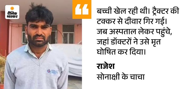 आंगन में खेल रही बच्ची पर गिरा पिलर,मौत:बैक लेते समय दीवार से टकराया ट्रैक्टर, साथ में खेल रहे भाई बहन बाल-बाल बचे