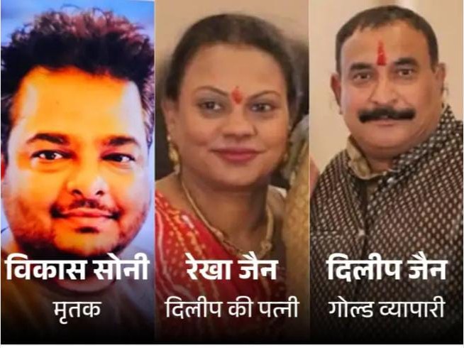 मध्य प्रदेश के मंदसौर में सराफा कारोबारी के घर फायरिंग की वारदात में दंपती समेत तीन की मौत हो गई। मरने वालों में एक चित्तौड़गढ़ के निंबाहेड़ा निवासी विकास सोनी है। विकास सोनी के शव के पास पिस्टल और चाकू भी बरामद किए गए हैं। घटना मंदसौर के गोल चौराह क्षेत्र में बुधवार रात करीब 8ः30 बजे की है। पड़ोसियों ने गोली की आवाज सुनी तो पुलिस को घटना की सूचना दी। एसपी विनोद कुमार मीणा, एडिशनल एसपी टीएस बघेल समेत पुलिस अधिकारी मौके पर पहुंचे। घटनास्थल की घेराबंदी कर जांच शुरू कर दी गई है। घटना से जुड़े PHOTOS मृतकों की पहचान मंदसौर के सराफा व्यापारी दिलीप जैन, उनकी पत्नी रेखा जैन और निंबाहेड़ा (चित्तौड़गढ़) निवासी विकास सोनी (35) के रूप में हुई है। विकास सोनी की निंबाहेड़ा में ज्वेलर्स की दुकान है। जेवर बनाने का काम करता था दिलीप मिली जानकारी के अनुसार, दिलीप जैन छिंगावत व्यापारियों का सोना लेकर जेवर बनाने का काम करते थे। मंदसौर और आसपास के कई व्यापारी उनके पास काम करवाने आते थे। दंपती की हत्या कर सुसाइड की आशंका बुधवार रात करीब 8ः30 बजे विकास सोनी दिलीप जैन के घर पहुंचा। उस समय घर में दिलीप जैन और पत्नी रेखा जैन मौजूद थे। मिली जानकारी के अनुसार, बातचीत के दौरान विवाद बढ़ा और झूमाझटकी हुई। बीच-बचाव करने रेखा जैन आगे आईं तो विकास ने दिलीप पर फायर किया और रेखा पर चाकू से हमला कर दिया। इसके बाद विकास ने खुद को भी गोली मार ली। पड़ोसियों को गोली चलने की आवाज सुनाई दी। पिस्टल और चाकू जब्त सूचना मिलते ही पुलिस मौके पर पहुंची। घटनास्थल पर दिलीप जैन, रेखा जैन और विकास सोनी के शव पड़े थे। विकास सोनी के हाथ से एक पिस्टल और एक चाकू जब्त किया गया है। तीनों शवों को पोस्टमार्टम के लिए मंदसौर जिला अस्पताल भेज दिया गया है। पुलिस ने घर के बाहर लगे सीसीटीवी कैमरों की डीवीआर भी अपने कब्जे में ले ली है। पुलिस व्यापारिक लेन-देन और आपसी रंजिश सहित सभी संभावित पहलुओं से मामले की जांच कर रही है। विकास सोनी घर में अकेला कमाने वाला था। उसकी निंबाहेड़ा में अपना ज्वेलर्स के नाम से दुकान थी। विकास के पिता गोपाल सोनी की कोरोना में डेथ हो गई थी। विकास के दो लड़के हैं।