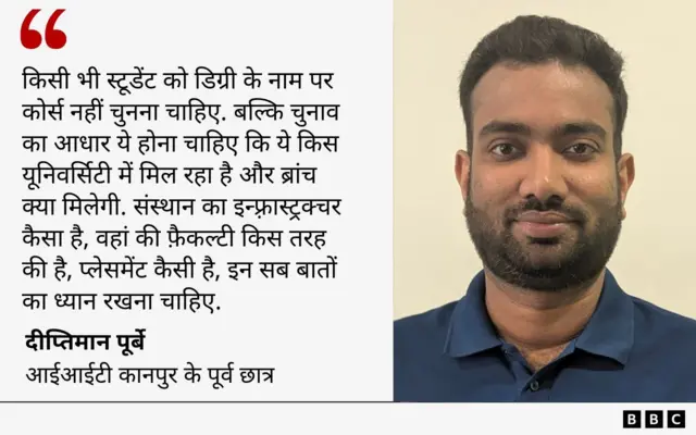 दीप्तिमान पूर्बे के मुताबिक़ असल दुनिया में बीई और बीटेक के बीच जो फ़र्क़ था वह मिट चुका है. अब दोनों ही कोर्स के बाद मिलने वाली करियर अपॉर्च्युनिटीज़ में कोई अंतर नहीं है.