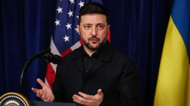 इमेज कैप्शन, रूस की ओर से लगाए गए आरोपों को यूक्रेन के राष्ट्रपति ज़ेलेंस्की ने ख़ारिज किया है
