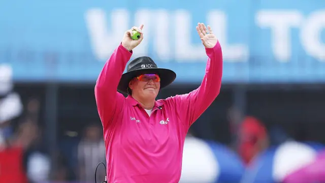 इमेज कैप्शन, इसी साल हुए विमेन वर्ल्ड कप के एक मुक़ाबले के दौरान अंपायर सू रेडफ़र्न