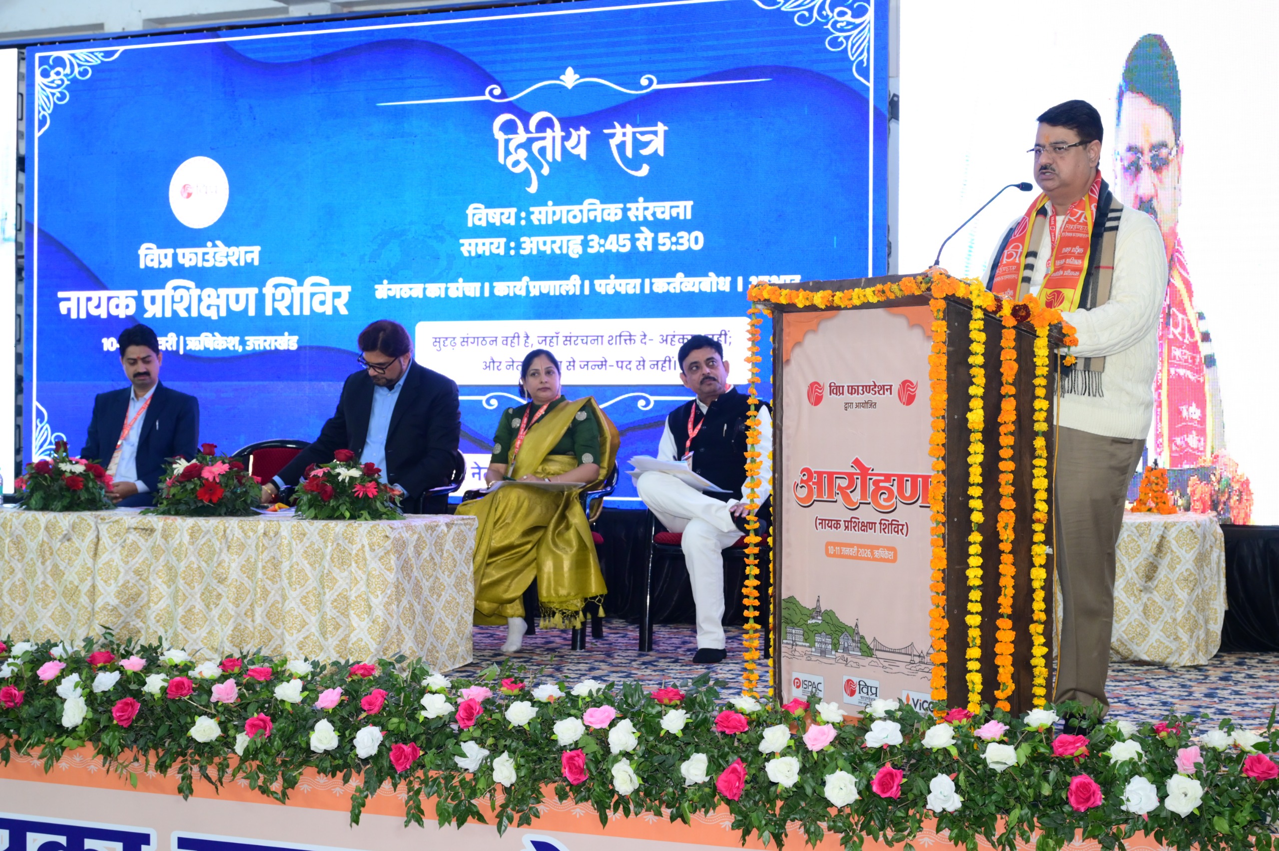 ऋषिकेश में विप्र फाउंडेशन द्वारा आयोजित दो दिवसीय 'आरोहण नायक प्रशिक्षण शिविर' ने समाज के सभी वर्गों को एकजुट करने का मजबूत संदेश दिया है। शनिवार से शुरू हुए इस शिविर का मुख्य उद्देश्य जातियों की जकड़न को तोड़कर शिक्षा, संस्कार और रोजगार के माध्यम से समाज को नई मजबूती प्रदान करना है। देशभर से चयनित 500 कार्यकर्ताओं को यहां नेतृत्व क्षमता, संगठन और सामाजिक दायित्वों का व्यावहारिक प्रशिक्षण दिया जा रहा है। उद्घाटन सत्र में वक्ताओं ने जोर देकर कहा कि एक समरस, सशक्त और प्रगतिशील समाज का निर्माण तभी संभव है, जब सभी वर्गों को साथ लेकर आगे बढ़ा जाए। शिविर के संस्थापक सुशील ओझा ने उद्घाटन सत्र में नायक प्रशिक्षण के उद्देश्यों पर विस्तार से प्रकाश डाला। उन्होंने कहा कि आरोहण से ही सच्चा नेतृत्व उभरता है और ये प्रशिक्षित नायक भविष्य में समाज के महानायक बनेंगे। ओझा ने कहा कि ऊंचाइयों को छूने के लिए अनुशासन, प्रशिक्षण और स्पष्ट उद्देश्य आवश्यक हैं। उन्होंने कार्यकर्ताओं से अपील की कि वे विप्र फाउंडेशन के मूल उद्देश्यों को गहराई से समझें, क्योंकि संगठन की गतिविधियों को जाने बिना प्रभावी सामाजिक कार्य असंभव है। ओझा ने बताया कि फाउंडेशन ने 20 सूत्री कार्यक्रम तैयार किए हैं, जो शिक्षा, रोजगार और स्वावलंबन पर आधारित हैं, ताकि समाजोत्थान को गति मिले। मुख्य संरक्षक सत्यनारायण शर्मा ने कहा कि सर्व समाज को साथ लेकर श्रेष्ठ कार्य करने से ही समाज का नाम और सम्मान बढ़ेगा। राष्ट्रीय अध्यक्ष राधेश्याम गुरुजी ने सत्र की अध्यक्षता करते हुए संगठन की विचारधारा पर जोर दिया और कहा कि समाज को आगे ले जाने के लिए अभी बहुत कुछ बाकी है। इसी जरूरत को देखते हुए फाउंडेशन ने नायक तैयार करने का संकल्प लिया है। संरक्षक बनवारी लाल सोती ने शिक्षा और कन्या विवाह को फाउंडेशन के मूल उद्देश्यों के रूप में रेखांकित किया। शिविर के दूसरे सत्र में सांगठनिक संरचना पर डॉ. सी.ए. सुनील शर्मा (मुंबई) ने मुख्य वक्ता के रूप में विचार रखे और संस्था की नीतियों पर प्रकाश डाला। इस सत्र की अध्यक्षता राष्ट्रीय उपाध्यक्ष जितेंद्र भारद्वाज ने की। इसके अलावा, अनुषांगिक संस्थाओं, प्रकल्पों और अर्थ नीति पर सत्र में विप्र चेम्बर पर ऋषभ सुरोलिया, इस्पेक पर प्यारे लाल शर्मा और अन्य प्रकल्पों पर राजकुमार व्यास ने अपने विचार साझा किए। मीडिया सत्र में वरिष्ठ पत्रकार विमलेश शर्मा की अध्यक्षता में राजेंद्र जोशी (बेंगलुरु) ने विषय पर व्याख्यान दिया। शिविर के दूसरे दिन जूना पीठाधीश्वर स्वामी अवधेशानंद गिरिजी महाराज शुभाशीष देने पधार रहे हैं, जो इस आयोजन को और अधिक प्रेरणादायक बनाएगा। यह शिविर न केवल प्रशिक्षण का माध्यम है, बल्कि समाज म