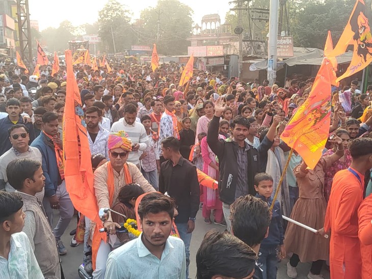 टोंक शहर में श्रीरामजी की शोभायात्रा निकालीं, लगे जयकारे:रामलला की प्राण-प्रतिष्ठा की दूसरी वर्षगांठ पर हुआ आयोजन