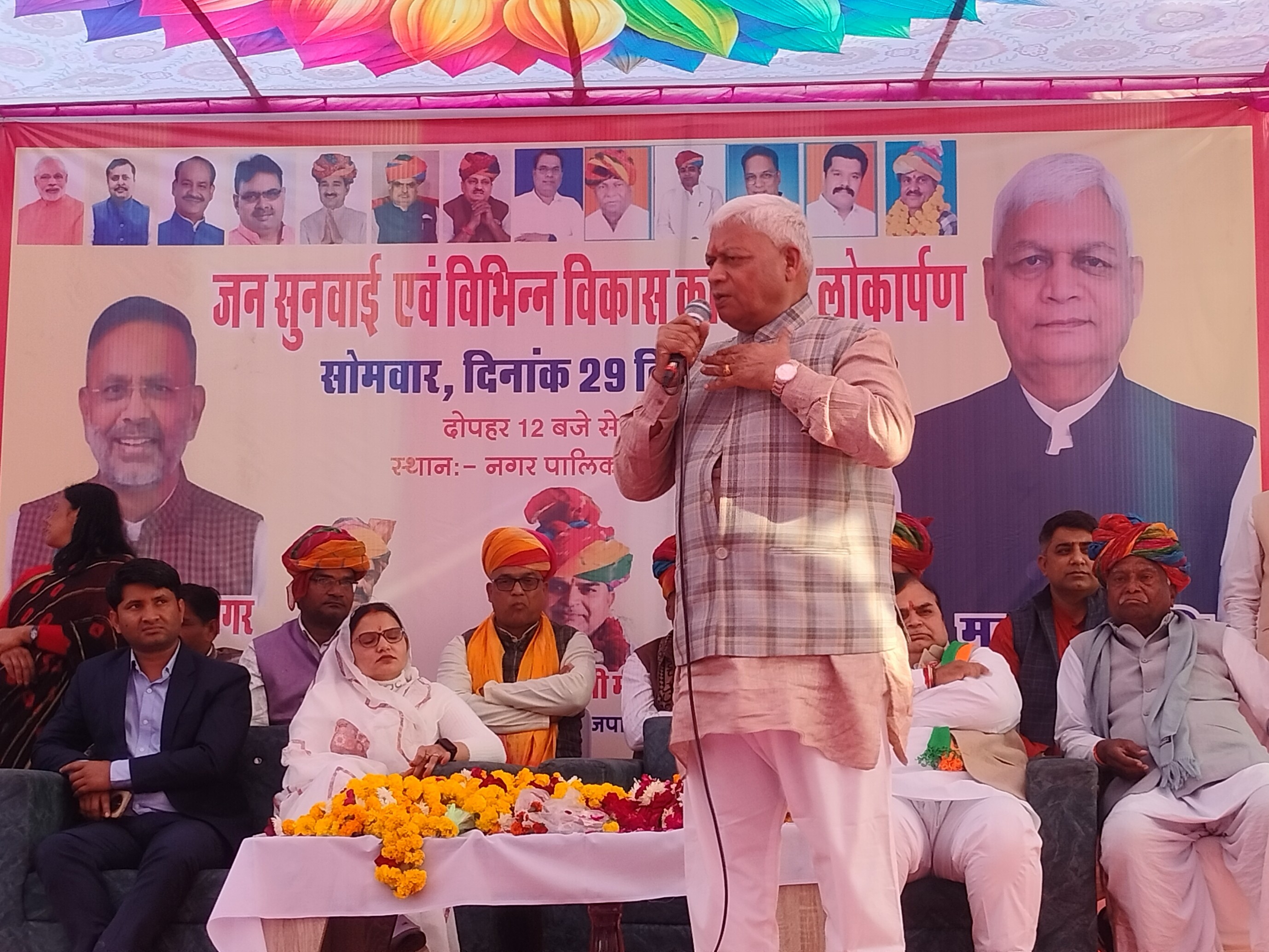 भीलवाड़ा सांसद दामोदर अग्रवाल ने नैनवां नगर पालिका में एक जनसुनवाई कार्यक्रम आयोजित किया। इस दौरान उन्होंने क्षेत्र के विकास कार्यों और सार्वजनिक समस्याओं पर विस्तार से चर्चा की। सांसद ने बताया कि पिछले एक साल में नगर पालिका द्वारा 2 करोड़ 52 लाख रुपए के 19 महत्वपूर्ण कार्य पूरे किए गए हैं, जिनमें सड़कों और पानी की व्यवस्था पर विशेष ध्यान दिया गया है। सांसद अग्रवाल ने चुनाव में समर्थन और आशीर्वाद देने के लिए निवासियों का आभार व्यक्त किया। उन्होंने स्वीकार किया कि पार्टी संगठन की जिम्मेदारियों के कारण पिछले डेढ़ साल में क्षेत्र में उनकी मौजूदगी कम रही, लेकिन अब वे इस कमी को पूरा करने का प्रयास करेंगे। उन्होंने कहा कि भारतीय जनता पार्टी, नरेंद्र मोदी सरकार और राजस्थान की भजनलाल सरकार का मुख्य उद्देश्य आम जनता की समस्याओं का समाधान करना है। सांसद ने मुफ्त राशन योजना, आयुष्मान भारत स्वास्थ्य बीमा, उज्ज्वला गैस कनेक्शन और किसान सम्मान निधि जैसी केंद्र व राज्य सरकार की योजनाओं का उल्लेख किया, जिनसे गरीबों और किसानों को सीधा लाभ मिल रहा है। अग्रवाल ने कांग्रेस शासनकाल की ईआरसीपी योजना की तुलना में वर्तमान सरकार द्वारा रामसेतु जल योजना को आगे बढ़ाने का जिक्र किया। उन्होंने जनता की समस्याएं सुनने और उन्हें दूर करने के प्रति अपनी प्रतिबद्धता दोहराई। उन्होंने बताया कि वे भीलवाड़ा कलेक्ट्रेट में सांसद जन संवाद केंद्र के माध्यम से नियमित जनसुनवाई करते हैं। सांसद ने घोषणा की कि वे अगले पांच वर्षों में दिल्ली के खजाने से 10 हजार करोड़ रुपए लोकसभा क्षेत्र के विकास के लिए लाएंगे। उन्होंने कहा कि वे समस्याओं से न तो डरते हैं और न ही भागते हैं, बल्कि उन्हें सुलझाने की पूरी कोशिश करते हैं। इस अवसर पर भाजपा जिलाध्यक्ष रामेश्वर मीणा, भाजपा के पूर्व जिलाध्यक्ष हेमराज नागर, नगर पालिका अध्यक्ष सरिता नागर, नैनवां एसडीएम भागचंद रेगार, नैनवां तहसीलदार राम राय मीणा, नैनवां डिप्टी राजू लाल मीणा, सीआई सहदेव मीणा और ईओ बृजभूषण शर्मा सहित कई जन प्रतिनिधि व अधिकारी मौजूद रहे।