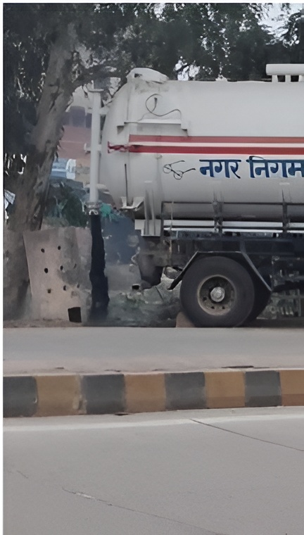स्वच्छता के पुख्ता इंतजाम और सर्वेक्षण में शीर्ष स्थान पाने के ढिंढोरा पीटने वाले नगर निगम प्रशासन की कलई गुरुवार को सरेआम खुल गई। जहां एक ओर निगम के अफसर अवैध रूप से चल रहे मलवाहक टैंकरों पर 11 हजार रुपए का जुर्माना लगाने की बात कर रहे थे, वहीं उनके ही विभाग का एक टैंकर शहर की सेहत पर खुलेआम वार करता नजर आया। यह शर्मनाक वाकया शहर के व्यस्ततम जघीना गेट क्षेत्र का है। यहां नगर निगम लिखा एक टैंकर से सड़क किनारे बह रहे नाले में सारा मल उडेलता नजर आया।