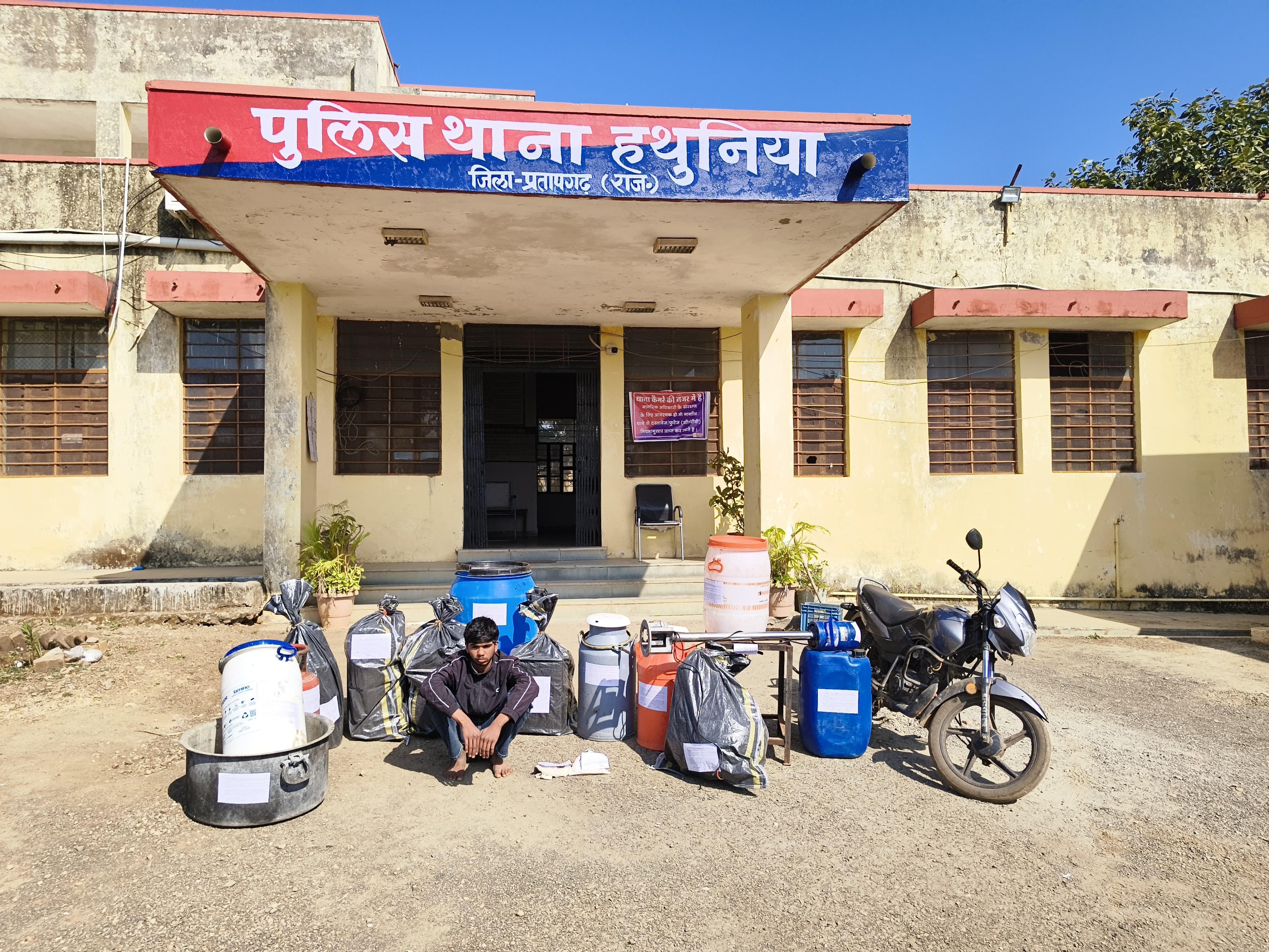 प्रतापगढ़ जिले में "ऑपरेशन चक्रव्यूह" के तहत हथुनिया पुलिस ने बड़ी कार्रवाई की है। बागलिया गांव के पास जंगल क्षेत्र में चल रही एक एमडी (मेथम्फेटामाइन) बनाने की फैक्ट्री का भंडाफोड़ किया गया है। पुलिस ने मौके से 28.54 ग्राम अवैध एमडी, निर्माण में प्रयुक्त उपकरण और एक बाइक जब्त कर आरोपी को गिरफ्तार किया है। 29 दिसंबर 2025 को हथुनिया पुलिस गश्त के दौरान बागलिया से टकरावद जाने वाले मार्ग पर गांव से करीब दो किलोमीटर आगे जंगल क्षेत्र में पहुंची। पहाड़ी इलाके में पेड़ों के बीच आग जलती देख पुलिस पैदल मौके पर पहुंची, जहां एक पक्का पानी का कुआं और काले प्लास्टिक तिरपाल से बनी एक अस्थायी झोपड़ी मिली। झोपड़ी के बाहर एक युवक चारपाई पर आग तापता मिला। पुलिस को देखकर वह घबरा गया और भागने का प्रयास करने लगा। पूछताछ में उसने अपना नाम करीम (21) निवासी बागलिया, थाना हथुनिया बताया। तलाशी के दौरान उसके कब्जे से 28.54 ग्राम अवैध मादक पदार्थ एमडी बरामद हुआ। झोपड़ी के अंदर एमडी बनाने में प्रयुक्त उपकरणों का पूरा सेटअप मिला। प्रारंभिक पूछताछ में सामने आया कि यह फैक्ट्री हारून पिता मोहम्मद अजमेरी द्वारा स्थापित की गई थी और करीम अजमेरी इसकी निगरानी कर रहा था। पुलिस ने मौके से बाइक भी जब्त की। पुलिस ने करीम अजमेरी को गिरफ्तार कर एनडीपीएस एक्ट के तहत मामला दर्ज किया है। नामजद आरोपी हारून अजमेरी की तलाश जारी है। पूछताछ में पता चला है कि हारून अजमेरी पहले भी कई बार एमडी बनाकर उसकी सप्लाई कर चुका है। उसके खिलाफ एनडीपीएस एक्ट के तहत पूर्व में चार मामले दर्ज हैं।