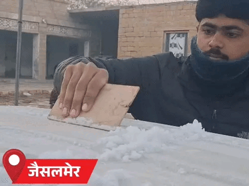सीकर में लगातार कोल्ड वेव चलने की वजह से यहां पर आज सीजन का सबसे कम तापमान रिकॉर्ड किया गया। सीकर में आज न्यूनतम तापमान जमाव बिंदु से नीचे -3.4 डिग्री दर्ज किया गया। 24 घंटे के दौरान यहां पर न्यूनतम तापमान में करीब 7 डिग्री की बड़ी गिरावट दर्ज की गई है। सुबह -3.4 डिग्री तापमान में हालात यह रहे कि सीकर में हर जगह बर्फ जमी हुई देखने को मिली। फिर चाहे वह किसी गाड़ी की छत,सीट हो या फिर खेतों में उगाई गई फसल। धूप निकलने के बाद लोगों को थोड़ी राहत मिली। खेतों में लगे पाइप,बाइक की सीट पर भी बर्फ जमी रही। सुबह माइनस में तापमान रहने की वजह से लोगों की दिनचर्या भी काफी प्रभावित हुई। धूप निकलने के बाद ही लोग अपने घरों से निकले। फिलहाल अभी सीकर में कल भी इसी तरह की तेज सर्दी रहने वाली है। सीकर में सीजन का सबसे कम न्यूनतम तापमान - 3.4 डिग्री दर्ज किया गया। जबकि इससे पहले यहां शनिवार को न्यूनतम तापमान 3.9 डिग्री और अधिकतम तापमान 16.8 डिग्री दर्ज किया गया था। जयपुर मौसम केंद्र के निदेशक राधेश्याम शर्मा बताते हैं कि आज और कल शेखावाटी में तेज शीतलहर चलेगी। इसकी वजह से यहां पर तापमान जमाव बिंदु के नीचे रह सकता है। सीकर में 12 जनवरी के लिए जयपुर मौसम केंद्र ने अति शीतलहर का ऑरेंज अलर्ट जारी किया है। यहां 13 जनवरी को भी कोल्ड वेव का येलो अलर्ट है। सीकर में 5 दिनों का न्यूनतम तापमान अब तस्वीरों में देखिए सीकर की सर्दी.. अब देखिए प्रदेश में मौसम का हाल.. राजस्थान में घर-गाड़ियों पर बर्फ जमी, तापमान माइनस 3 डिग्री:रेगिस्तानी इलाकों में बर्फीली हवा,14 जिलों में चेतावनी, मकर संक्रांति पर रहेगा कोल्ड-डे राजस्थान में सीजन में पहली बार तापमान माइनस 3.4 डिग्री सीकर के फतेहपुर में रिकॉर्ड हुआ है। न्यूनतम तापमान में आई गिरावट के कारण यहां जगह-जगह बर्फ जम गई। रेगिस्तानी जिले जैसलमेर के कई एरिया में सुबह बर्फ जमी नजर आई।(पूरी खबर पढ़ें)