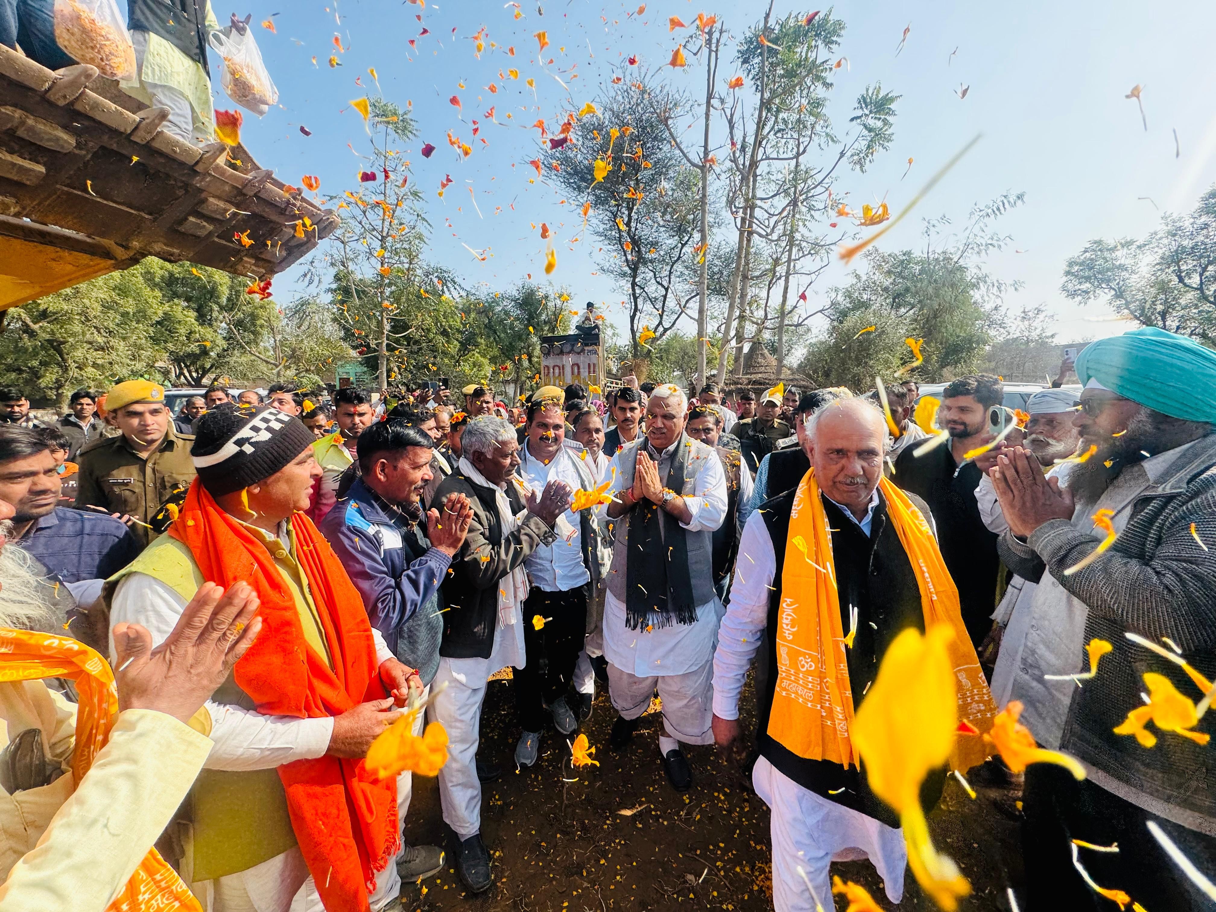 डीग के निहाम (सीकरी) में रविवार को गृह, गोपालन, पशुपालन, डेयरी एवं मत्स्य विभाग राज्य मंत्री जवाहर सिंह बेढ़म ने 50 लाख रुपए की लागत से बनी आधुनिक पौधशाला का लोकार्पण किया। उन्होंने समाजसेवी स्व. ओमप्रकाश भगत की प्रथम पुण्यतिथि पर आयोजित राम नाम जप कार्यक्रम और श्रद्धांजलि सभा में भी शिरकत की। इस अवसर पर विशाल जनसभा को संबोधित करते हुए मंत्री बेढ़म ने कहा कि जन-प्रतिनिधित्व का मूल ध्येय जन-आकांक्षाओं को पूरा करना और सेवा-भाव को सर्वोच्च प्राथमिकता देना है। उन्होंने स्व. ओमप्रकाश भगत को नमन करते हुए उनके सादा जीवन और उच्च विचारों की सराहना की। मंत्री ने प्रशासनिक जवाबदेही का उदाहरण देते हुए अपने पुराने दौरे की रात्रि चौपाल को याद किया। उन्होंने बताया कि उस समय बिजली और पानी की जो समस्याएं सामने आई थीं, उनके समाधान की दिशा में कार्य किया गया है। बिजली के डिमांड नोटिस जारी हो चुके हैं और जल्द ही बोरिंग के माध्यम से जलापूर्ति सुनिश्चित की जाएगी। मंत्री की इस वचनबद्धता का मौजूद लोगों ने ताली बजाकर स्वागत किया। पर्यावरण संवर्धन: 'हरित सीकरी' की ओर कदम क्षेत्र के पारिस्थितिक तंत्र को सुदृढ़ करने के उद्देश्य से मंत्री महोदय ने 50 लाख रुपए की लागत से तैयार नवीन पौधशाला का लोकार्पण किया। उन्होंने कहा कि यह पौधशाला आने वाली पीढ़ियों को शुद्ध पर्यावरण देने में 'मील का पत्थर' साबित होगी। इस दौरान उन्होंने स्वयं पौधारोपण कर पर्यावरण संरक्षण का संदेश दिया। विकास कार्यों की 'सतत निगरानी निहाम के कार्यक्रम के पश्चात मंत्री बेढ़म ने सीकरी में प्रशासनिक अधिकारियों की समीक्षा बैठक ली। उन्होंने बिजली, पीडब्ल्यूडी, पीएचईडी और राजस्व विभाग के अधिकारियों को निर्देश दिए कि विकास कार्यों की गुणवत्ता और समयबद्धता सुनिश्चित की जाए। तपोभूमि को नमन मंत्री ने अपने उद्बोधन में क्षेत्र के प्रसिद्ध सेवल मंदिर और वनबिहारी जी महाराज की तपोभूमि को नमन किया। उन्होंने कहा कि संतों के आशीर्वाद और आध्यात्मिक वातावरण से ही जन-कल्याण के कार्यों को नई दिशा मिलती है। ये रहे मौजूद कार्यक्रम में स्थानीय जनप्रतिनिधि, विभिन्न अखाड़ों के साधु-संत, सामाजिक संगठनों के पदाधिकारी और हजारों की संख्या में श्रद्धालु एवं ग्रामवासी उपस्थित रहे जिन्होंने मंत्री महोदय का भव्य स्वागत किया।