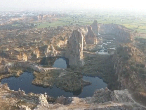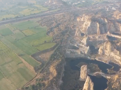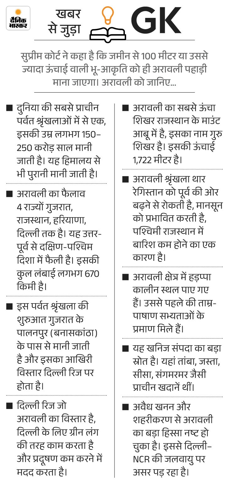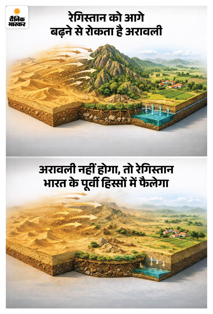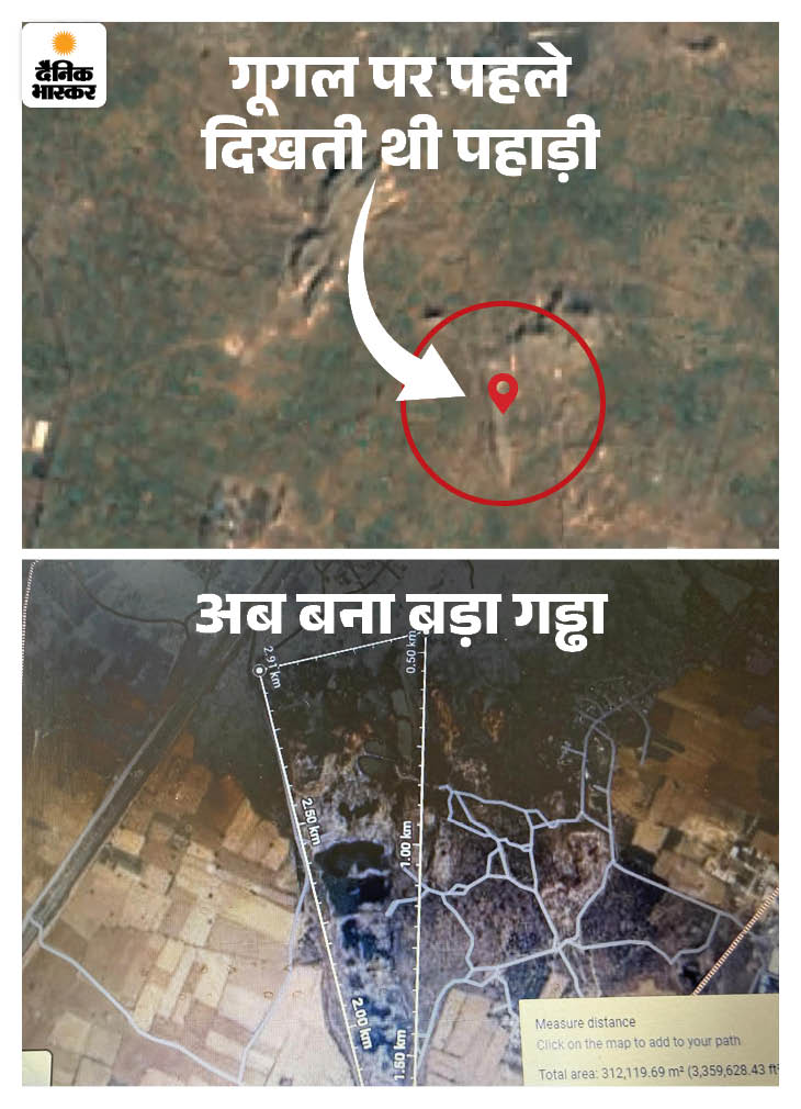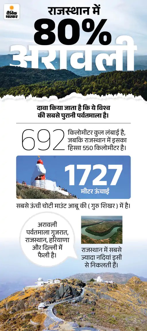 राजस्थान सहित पूरे देश में चल रही अरावली बचाओ मुहिम के बीच भिवाड़ी (तिजारा-खैरथल) से झकझोर देने वाली तस्वीर सामने आई है। दिल्ली-NCR रीजन में कहरानी (भिवाड़ी) की पहाड़ियों में इतना खनन हुआ कि अब यहां टावरनुमा नुकीली चट्टानें ही बची हैं। पिछले कुछ सालों में हुई अंधाधुंध खनन के बाद पहाड़ खत्म हो गए। बचे हैं तो 50-50 फीट गहरे गड्ढे। स्थानीय लोगों का दावा है कि एक किलोमीटर तक खोदी गई इसी पहाड़ी से नोएडा और दिल्ली में नया कंस्ट्रक्शन हुआ है। जब से सुप्रीम कोर्ट ने अरावली की नई परिभाषा को मंजूरी दे दी है, शोर मचा हुआ है। इस परिभाषा के अनुसार 100 मीटर या इससे ऊंची पहाड़ी को ही अरावली माना जाएगा। चिंताजनक ये है कि 2010 की फॉरेस्ट सर्वे ऑफ इंडिया रिपोर्ट के मुताबिक करीब 12 हजार पहाड़ियों में करीब 8% ही 100 मीटर से ऊंची हैं। सबसे पहले 2 तस्वीर, जहां पहाड़ की जगह गड्ढे दिख रहे... दिल्ली-NCR के नजदीक अरावली के पहाड़ सबसे अधिक छलनी किए गए दिल्ली से गुजरात तक 670 किलोमीटर में अरावली के पहाड़ हैं। दिल्ली-NCR के नजदीक अरावली के पहाड़ सबसे अधिक छलनी किए गए हैं। कहरानी में भी सिर्फ 10 साल (2002 से 2012 तक) में पहाड़ को इतना काटा गया कि अब टावरनुमा नुकीली पहाड़ी बची है। अकेले इस पहाड़ पर अवैध खनन का एरिया करीब 2.5 वर्ग किलोमीटर है। कहरानी के आसपास के गांव चौपानकी, हसनपुर, उधनवास, तिजारा, टपूकड़ा, किशनगढ़बास, खैरथल, मुंडावर, मालाखेड़ा, जटियाना, राजगढ़, रैणी, थानागाजी, लक्ष्मणगढ़, घाट, प्रतापगढ़, बहरोड़, बानसूर, नीमराणा, शाहजहांपुर सहित करीब 300 स्थानों पर अवैध खनन होता था। वन विभाग ने 50 हजार करोड़ की वन व खनिज संपदा के नुकसान का हवाला दिया था एक्सपट्र्स का दावा है कि इस इलाके में 1 लाख करोड़ रुपए से ज्यादा का खनिज अवैध खनन कर माफियाओं ने बेच डाला है। 2014 में अलवर डीएफओ ने एनजीटी के आदेश पर अवैध खनन से हुए नुकसान का आकलन कराया था। तब डीएफओ ने अपनी रिपोर्ट में 50 हजार करोड़ रुपए की वन व खनिज संपदा के नुकसान का हवाला दिया था। इसके अलावा खनन से प्रकृति को हो रहा नुकसान अलग था। दैनिक भास्कर टीम ने ड्रोन से इन पहाड़ियों का जायजा लिया। ड्रोन से इनकी जमीन से ऊंचाई 70 से 80 मीटर के आसपास निकली। वो भी तब जब यहां 50 फीट जमीन के लेवल से नीचे तक अवैध खनन हो चुका है। कहरानी के निकट जोड़िया गांव के चरवाहे हकमू ने बताया- यहां 2002 से अवैध खनन शुरू हुआ था। करीब 10 साल में पूरा पहाड़ साफ कर दिया। यहां का पत्थर हरियाणा से आगे तक जाता है। यहां जोड़िया, कहरानी, बूडली, चेलाकी, चौपानकी सहित आसपास अन्य जगहों के पहाड़ों में भी जमकर अवैध खनन हुआ है। पहले 24 घंटे अनगिनत डंपर चलते थे। अवैध खनन के समय 15 से ज्यादा लोगों की मौत हकमू बताते हैं- अवैध खनन में 15 से ज्यादा मौतें हो चुकी हैं। जमीन के नीचे त