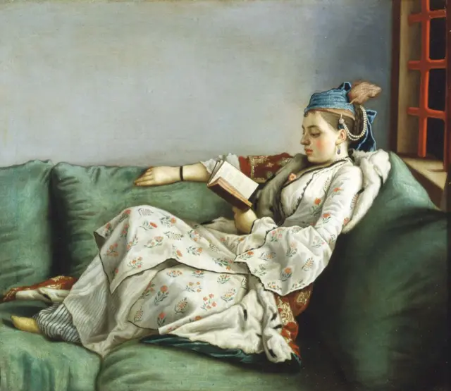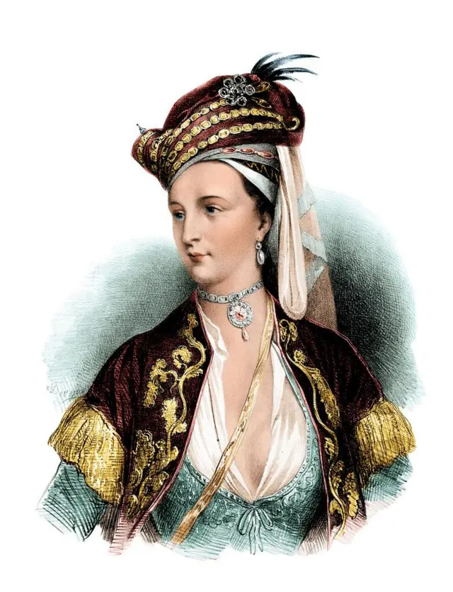 Fotoğraf altı yazısı, Oryantalist ressam Jean-Étienne Liotard'ın tablosunda, Fransız Maria Adelaide Türk kıyafetleriyle resmedilmişti. 1753 tarihli bu eser, bu dönemin Osmanlı etkisini yansıtan resimlerden biri olarak bugün Floransa'da Uffizi Müzesi'nde sergileniyor.