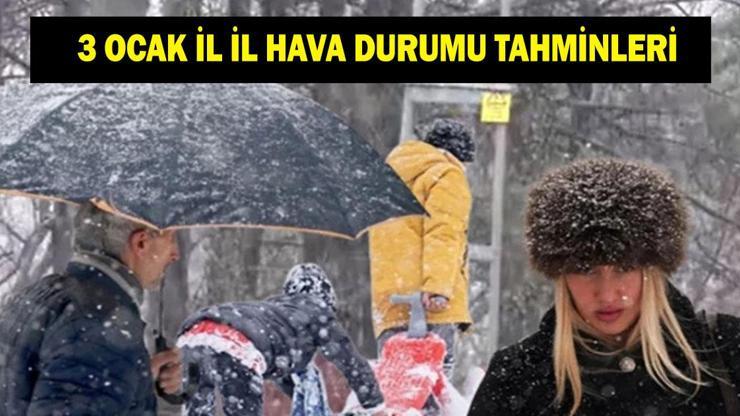 Meteoroloji Genel Müdürlüğü tahminlerine göre ülkemizin kuzey, iç ve batı kesimlerinin parçalı ve çok bulutlu, Marmara'nın batısı, Kıyı Ege ile Bursa, Yalova, Manisa, Uşak, Zonguldak, Bartın ve Sinop çevrelerinin yağmur ve sağanak yağışlı, Kastamonu, Karabük ve Şırnak çevrelerinin karla karışık yağmur ve kar yağışlı, diğer yerlerin az bulutlu ve açık geçeceği tahmin ediliyor. Marmara Bölgesi'nde, bugünden itibaren İstanbul'un da aralarında bulunduğu bazı illerde kuvvetli rüzgar ve fırtına bekleniyor. Peki bugün (3 Ocak) havalar nasıl olacak? İstanbul, Ankara, İzmir'de hafta sonu kar var mı? İşte MGM il il hava durumu tahminleri...