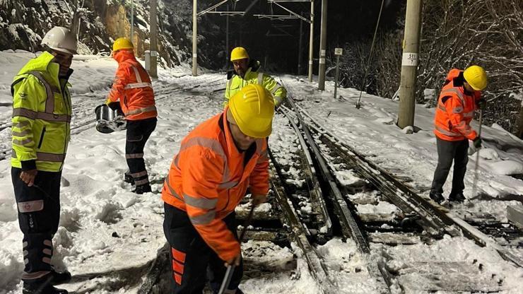 TCDD'den yapılan açıklamaya göre, yeni yılla birlikte ülke genelinde etkili olan soğuk hava ve yoğun kar yağışına rağmen, demir yolu trafiğinin güvenli ve kesintisiz şekilde sürdürülebilmesi için demiryolcular sahada yoğun mesai yürüttü. TCDD, 13 bin 919 kilometrelik demir yolu ağında yük ve yolcu taşımacılığının aksamaması amacıyla tüm imkanlarını seferber etti. Karla mücadele çalışmaları, TCDD Genel Müdürlüğü bünyesinde oluşturulan ve 7 gün 24 saat esasına göre görev yapan Kontrol Merkezi tarafından koordine edildi. Ülke genelindeki hat kesimlerinde yürütülen tüm faaliyetler bu merkezden anlık olarak izlenirken, bölge müdürlükleriyle sürekli iletişim halinde planlama ve yönlendirme yapıldı.