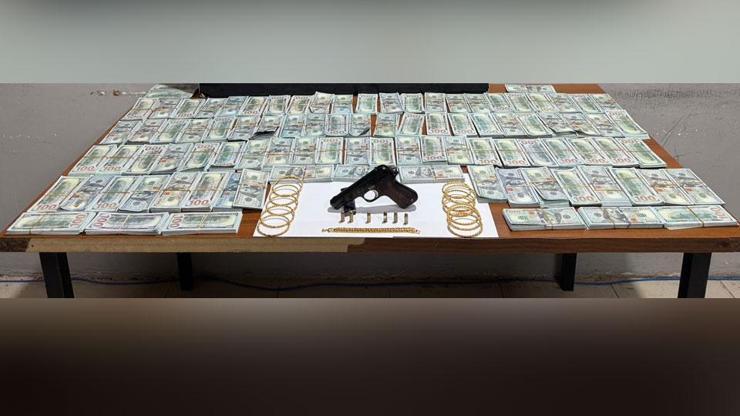 Otomobildeki aramada, sahte olduğu tespit edilen toplam 1 milyon dolar ile 12 bilezik, künye, ruhsatsız tabanca ve 6 fişek ele geçirildi.