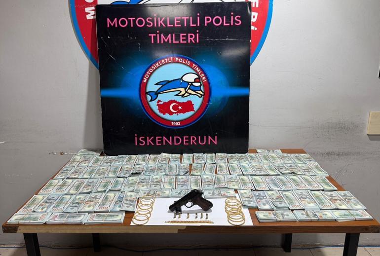 Hatay'ın İskenderun ilçesinde polisin şüphe üzerine durdurduğu araçta yapılan aramada sahte 1 milyon dolar ile 12 bilezik, künye, ruhsatsız tabanca ve 6 fişek ele geçirildi. Araçtaki 3 kişi tutuklandı.