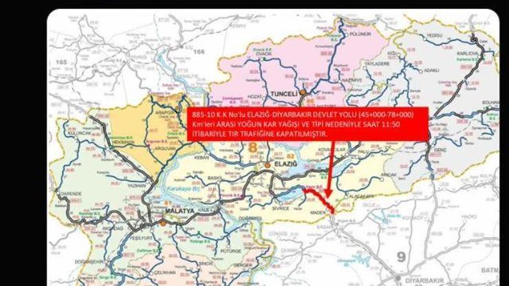 ELAZIĞ-DİYARBAKIR KARA YOLU AĞIR TAŞITLARA KAPATILDI