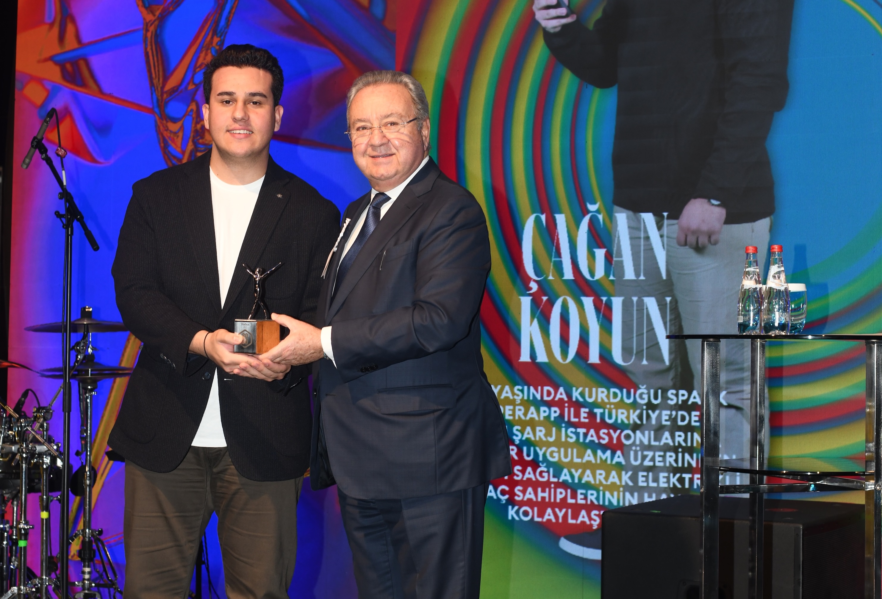 Kabadayı, "Bugün bu kürsüye davet edilmek başarının ilk adımı. Bence bu gece başarıyla birlikte hem vizyonerlik ve cesaretiniz de ödülleniyor. Ödül alan tüm genç kardeşlerimiz önümüzdeki dönemde de başarılarının çıtalarını daha yukarıya doğru çıkarır. Yapay zeka ise artık hayatımızın bir parçası olmaya başladı. Hem günlük hayatımızda hem kurumsal iş hayatımızda kullanıyoruz. Biz de interaktif müşteri hizmetlerimize iki tane yapay zeka koyduk. Sizi de kullanacağız" şeklinde konuştu.
