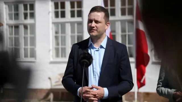 Fotoğraf altı yazısı, Grönland Başbakanı Jens-Frederik Nielsen, adanın "kendi geleceğine karar vermesi" ve "toprak bütünlüğüne saygı gösterilmesi" gerektiğini söyledi.