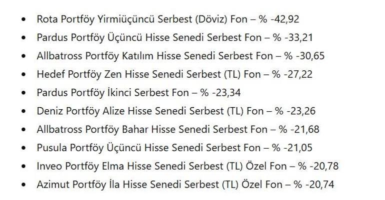 Haftanın en çok kaybettiren 10 yatırım fonu: