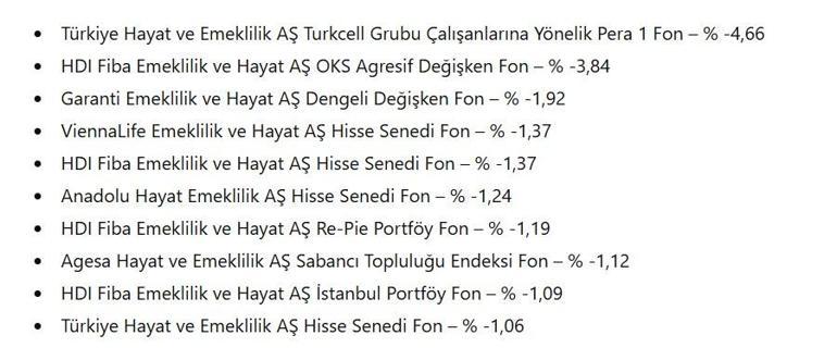Haftanın en çok kaybettiren 10 emeklilik fonu: