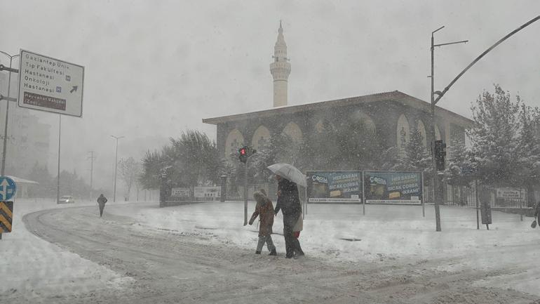 Güne beyaz örtüyle uyanan Gaziantepliler, karla kaplı yollarda güçlükle ilerledi.