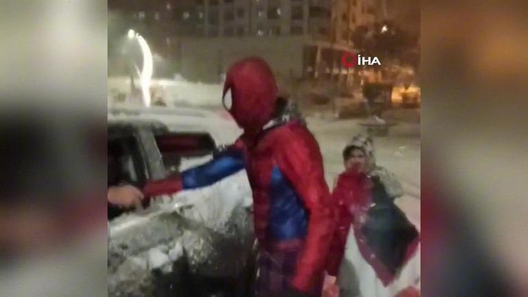 Karlı havada mahsur kaldı, Örümcek Adam imdadına yetişti!