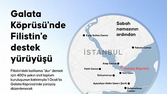 Galata Köprüsü'nde 1 Ocak'ta düzenlenecek Filistin eylemi için ortak çağrı