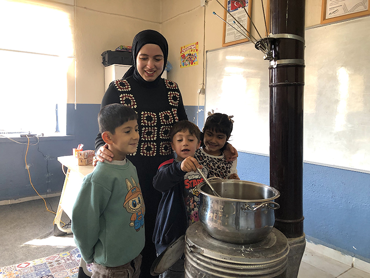"Her gün 25 kilometre geliyorum. Kış şartları burada gerçekten çok zor oluyor. Yolda kaldığımız çok zaman oldu ama her gün bu çocukların yanına gelmek, bütün bu zorlukları aşmaya değer. Sınıfta 6 öğrencim var. Her günümüz güzel ve eğlenceli geçiyor. Beraber çok güzel etkinlikler yapıyoruz. Ne kadar kar yağsa da çocukların her yıl ilk kez kar görüyormuş gibi yaşadığı sevinç bizleri mutlu ediyor. Sobada tatlı ve yemekler hazırlıyorum. Puding, pizza yapıyoruz, meyve suyu hazırlıyoruz. Bazen ballı süt yapıyoruz. Bu durum çocuklar için hem motivasyon kaynağı oluyor hem de dersleri daha keyifli hale getiriyor."
