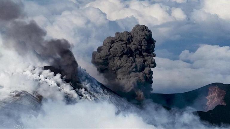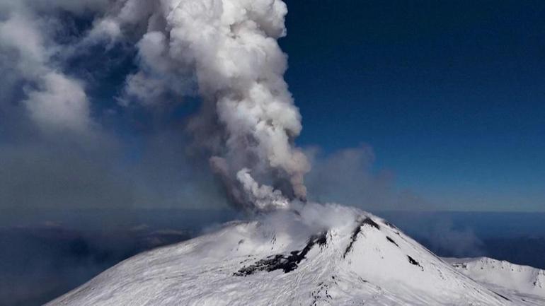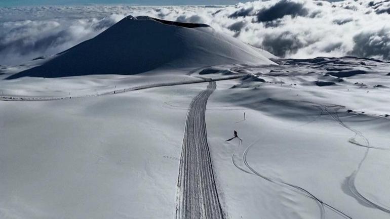 Karla kaplı Etna Yanardağı’ndan lav ve duman çıkmaya başladı.