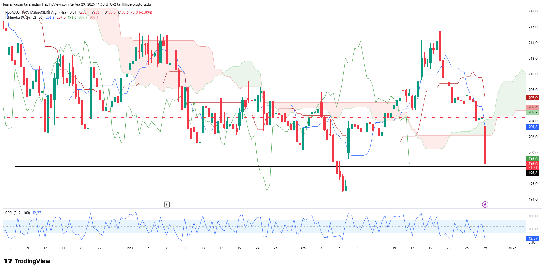 Gelen açıklamalar sonrasında Pegasus hisseleri yüzde 3'e yakın değer kaybetti. Dünü 204,5 seviyesinde kapayan Pegasus, 198,5 seviyesine kadar geriledi.